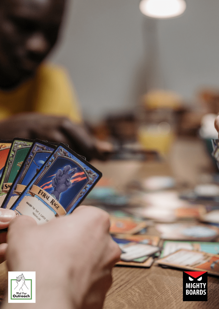 Hal Far Outreach, in collaboration with Mighty Boards and AWAS, currently runs board game workshops in Hal Far Open Centres.