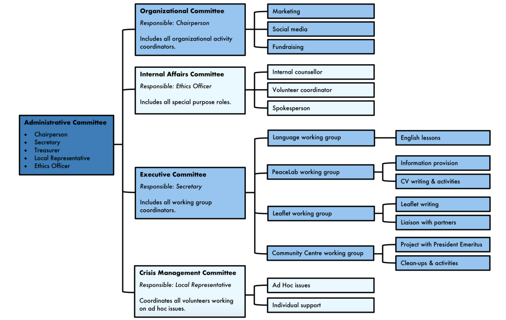 Since its establishment, the organisation has grown significantly: both in number of volunteers and in projects. As the context in Malta changed and Hal Far Outreach developed into a valued stakeholder in the NGO sector, a change in approach and structure was required. Therefore, Hal Far Outreach changed from a decentralised and flat organisation to one with a more established and centralised structure in September 2019. As volunteers of Hal Far Outreach, we believe that the organisation must use a coordinated and efficient approach to provide an appropriate and effective response to the needs of the people in Ħal Far. At the same time, each individual volunteer should be stimulated to take responsibility and put forward their own ideas. These beliefs are the core of the new structure of Hal Far Outreach.